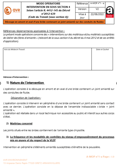 Etablissement et validation auprès des CARSAT, DIRECCTE, Médecine du Travail du Mode Opératoire